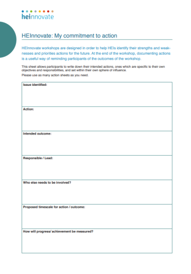 Action sheet View file Download file You can use the action sheet to capture the actions agreed on by participants during the workshops. Category: Planning templates Submitted on: 04 Dec 2025