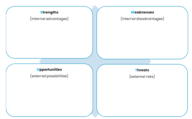 A SWOT (Strengths – Weaknesses – Opportunities – Threats) analysis helps institutions reflect on their current position and identify strategic priorities for strengthening innovation and entrepreneurship. By examining internal strengths and weaknesses together with external opportunities and threats, higher education institutions can develop a clearer understanding of where to focus actions emerging from their HEInnovate self-assessment during Step 3: Plan. This worksheet supports discussing key factors that influence institutional capacity, partnership building, learning environments, and long-term development.